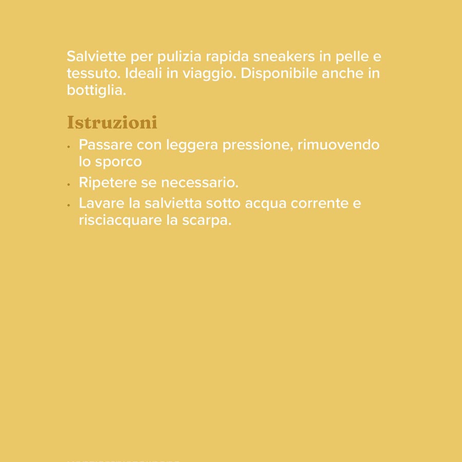 Salviette per pulizia rapida sneakers in pelle e tessuto. Ideali in viaggio. Disponibile anche in bottiglia.