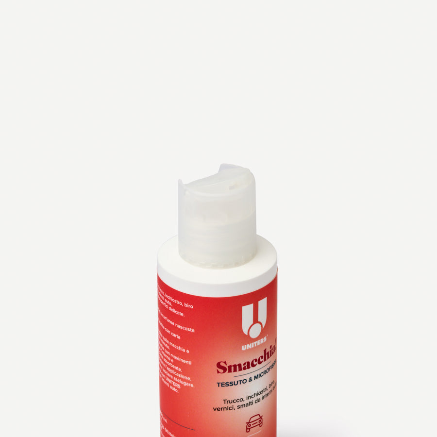 Elimina macchie di trucco, inchiostro, penna a sfera e vernici da tessuti interni auto. Non adatto a pelli e superfici delicate.
